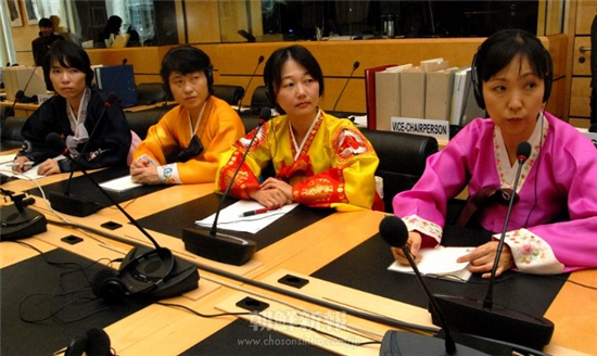 国連の会議室では小汚い格好に加え、チマチョゴリやアイヌの民族衣装のコスプレおばさんまで登場。完全に品格に問題があります。